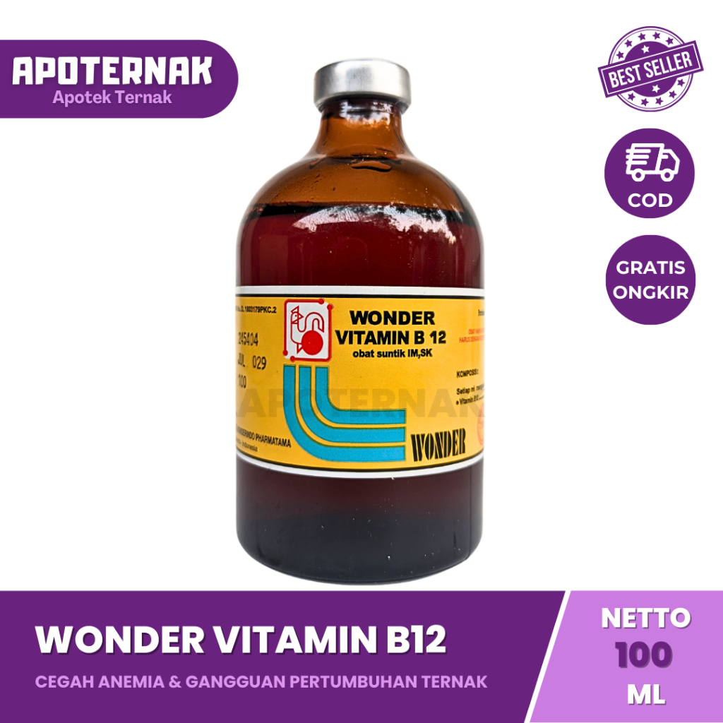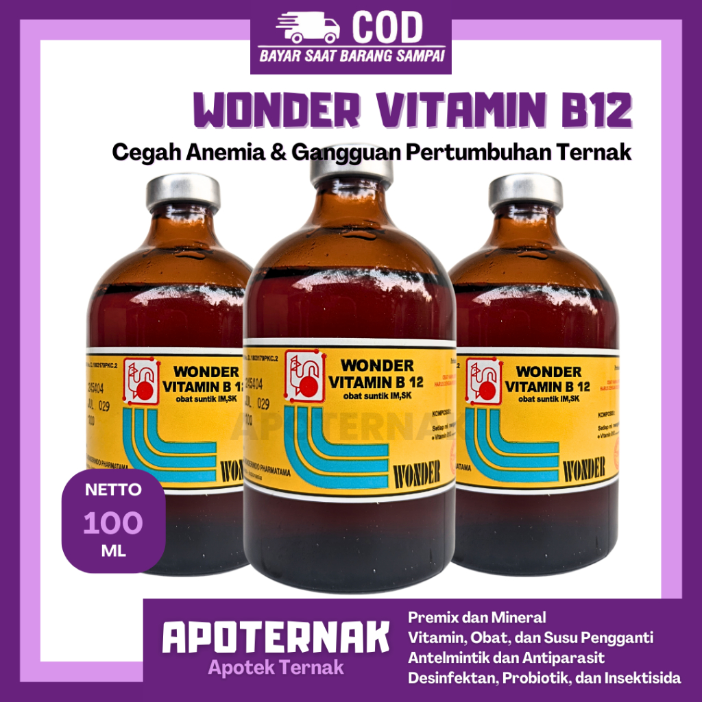 VITAMIN B12 WONDER 100ML & 50ML - Vitamin B12 Hewan untuk Anemia & Gangguan Pertumbuhan Ternak