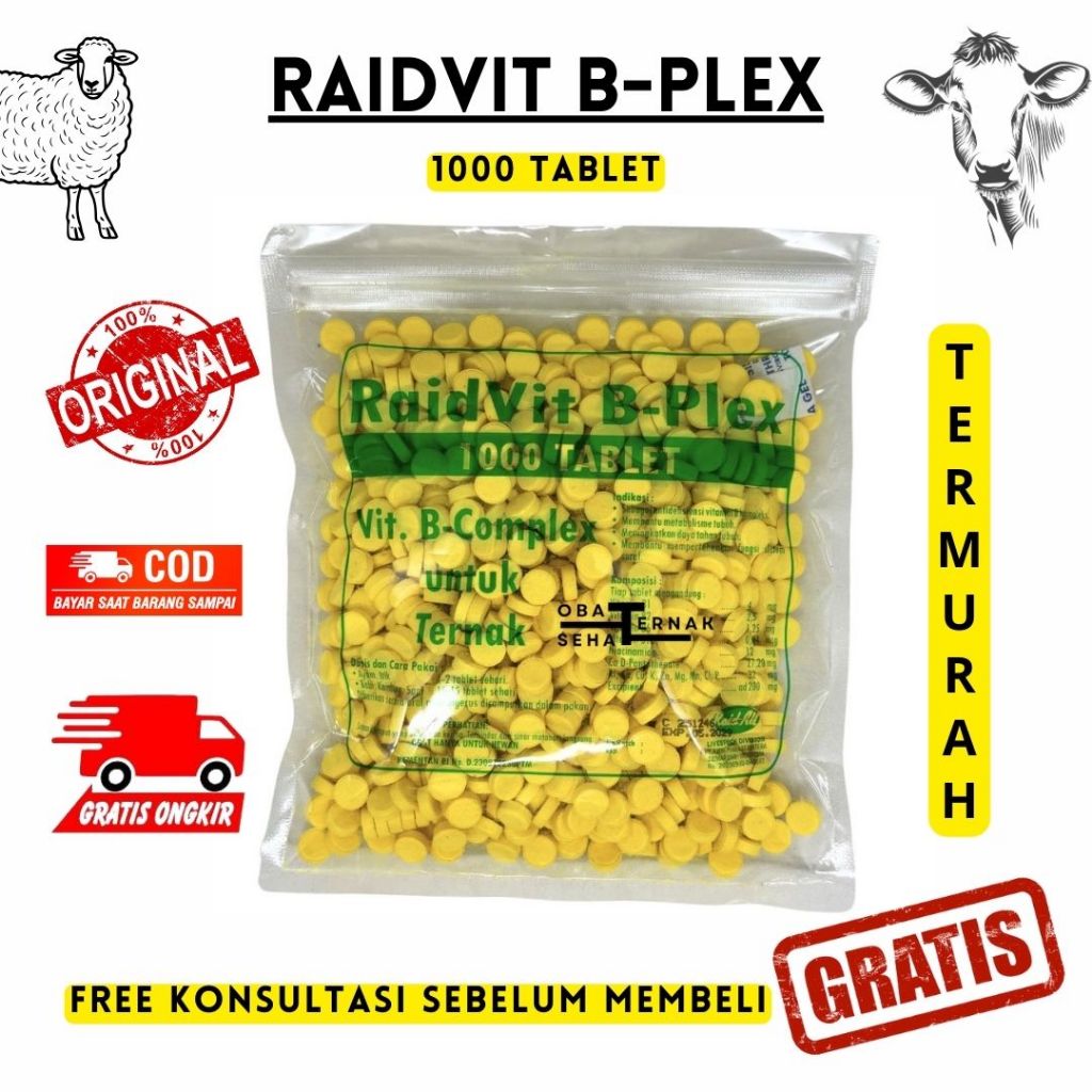 RAIDVIT B-Plex 1 DUS (ISI 20 PCS @1000 Tablet) - Raid All - Vitamin B Complex, B Komplek Ternak