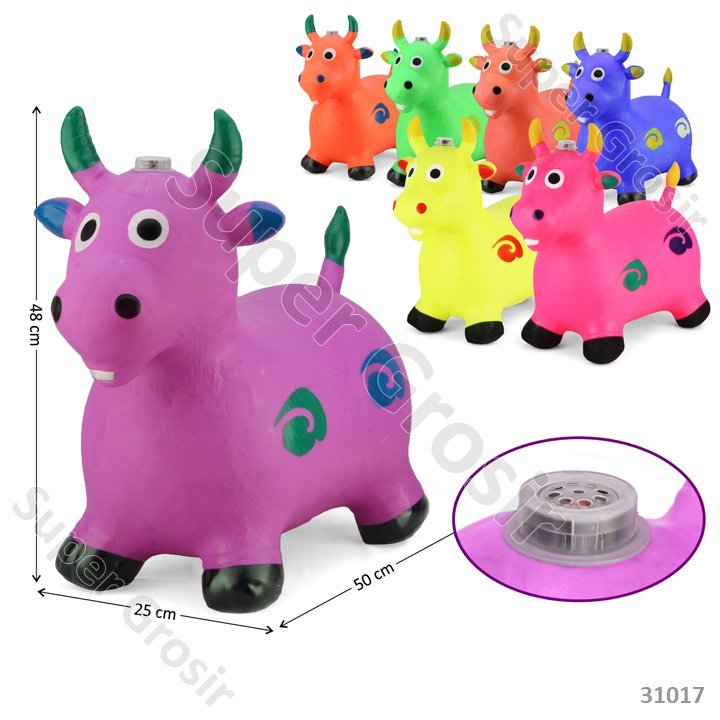 Mainan Anak Jumping Animal Mainan Tunggang Binatang Karet Dinaiki Bnatang Karet Sapi+ musik Bingkar
