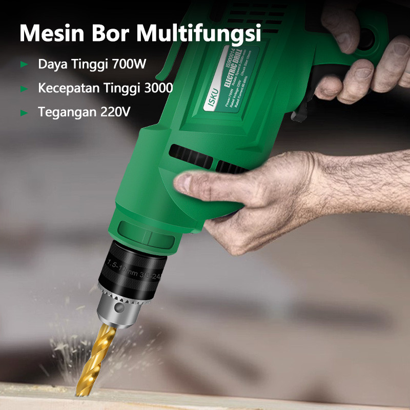ISKU Mesin Bor Listrik Bolak Bali 700W 220V Hand Electric Drill Berlaku untuk 1.5-10mm Mata Bor/Mesin Bor