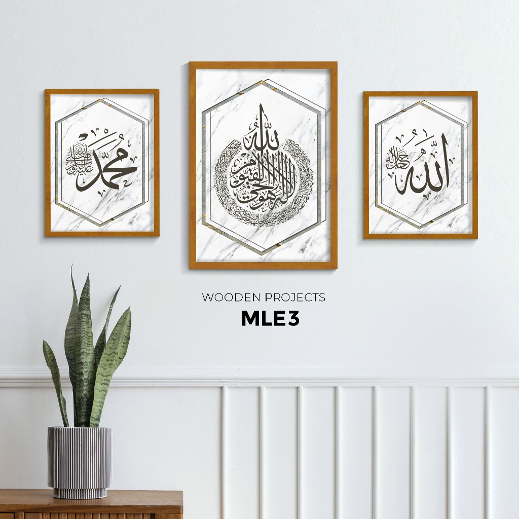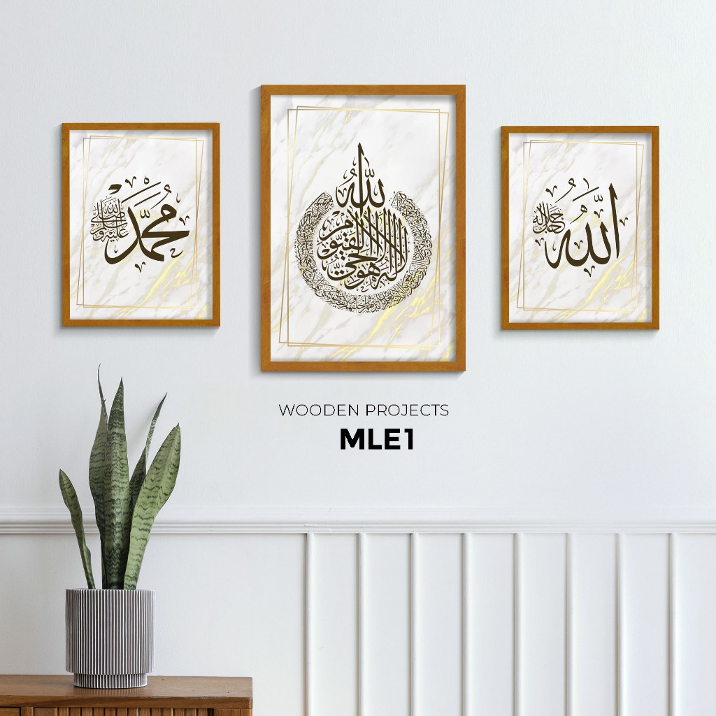 Wooden Projects Set Hiasan Dinding Frame Medium Size Kaligrafi Aesthetic Tema Light Marble - MLE