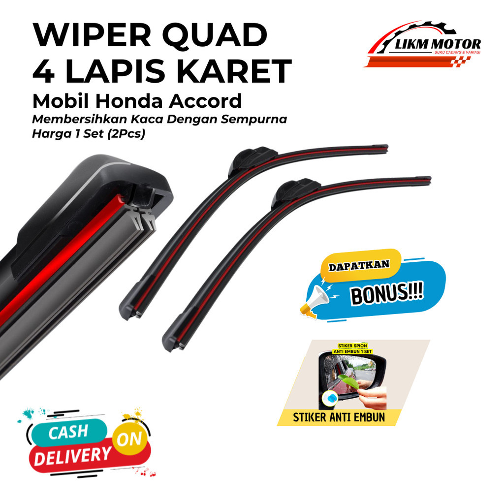 Wiper Quad 4 Karet Mobil 1 Set Kiri dan Kanan Bonus Stiker