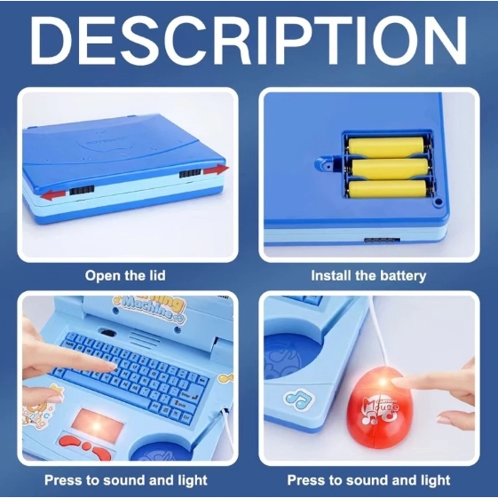 Mainan Laptop Anak Perempuan Mainan Learning Machine Notebook Mainan Edukasi Anak dengan Lampu Musik