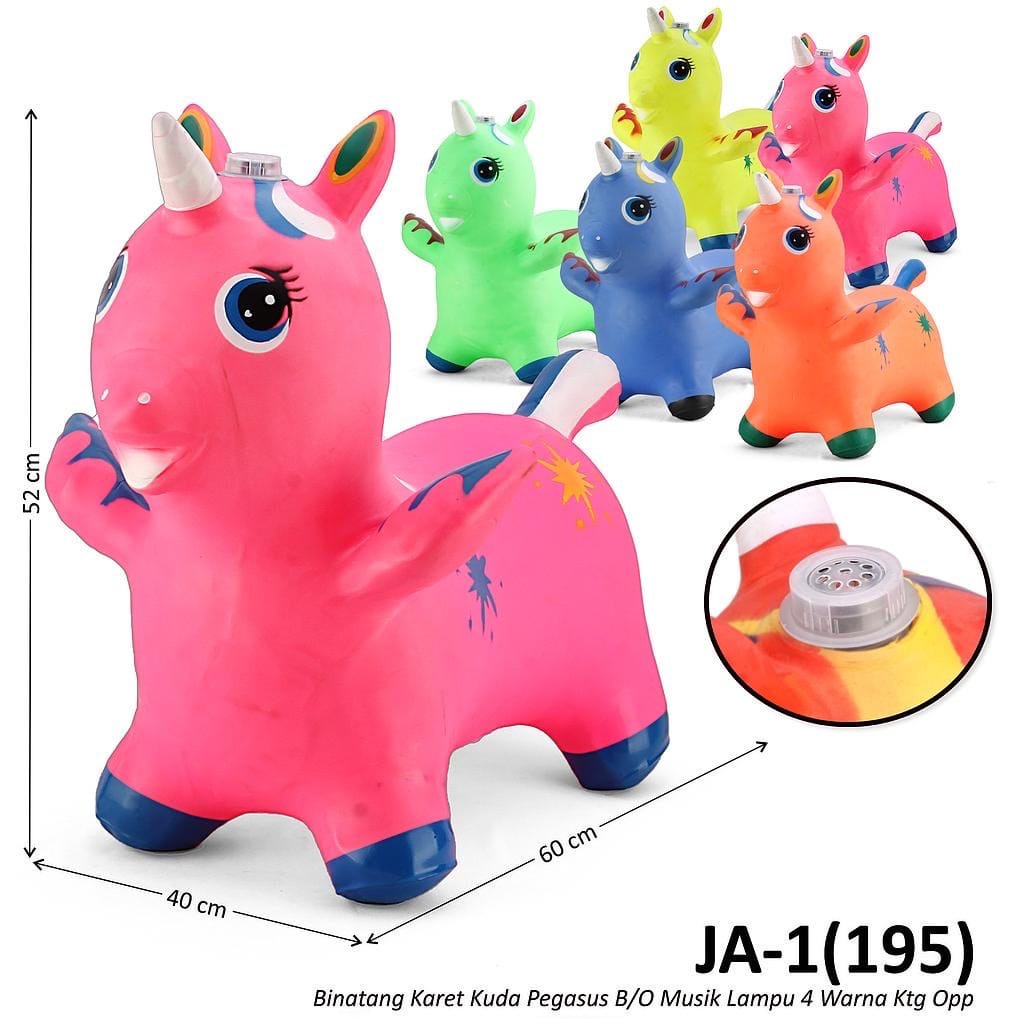 MAINAN ANAK JUMPING ANIMAL KUDA PEGASUS MAINAN KARET LOMPAT ANAK ANAK MUSIK SUARA BINATANG SESUAI KARAKTER LUCU