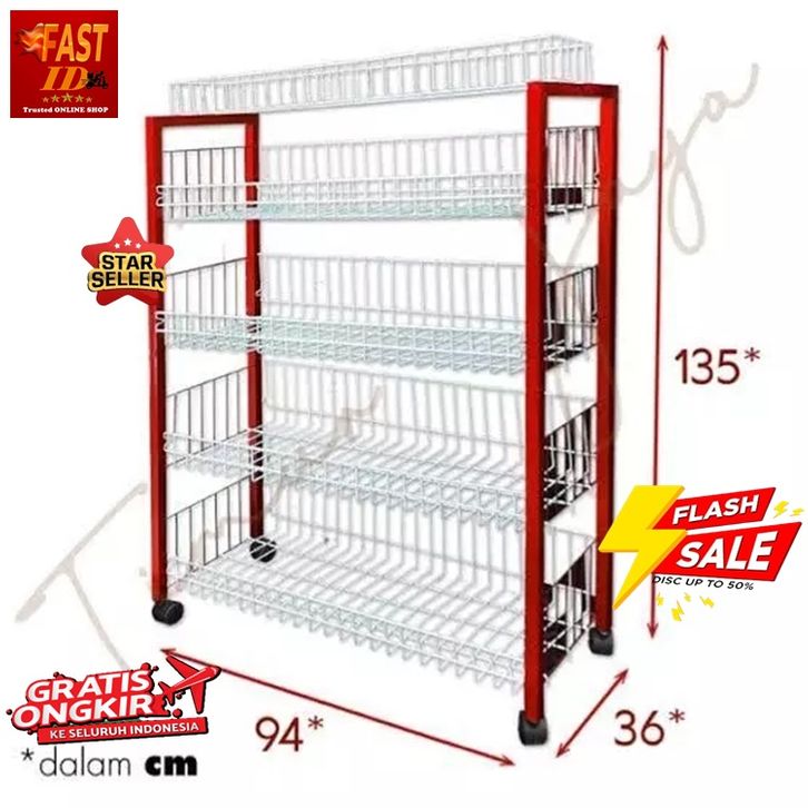 GRATIS ONGKIR RAK SERBAGUNA BESI SUSUN 5 RODA RAK BESI GUDANG RAK CIKI SNACK