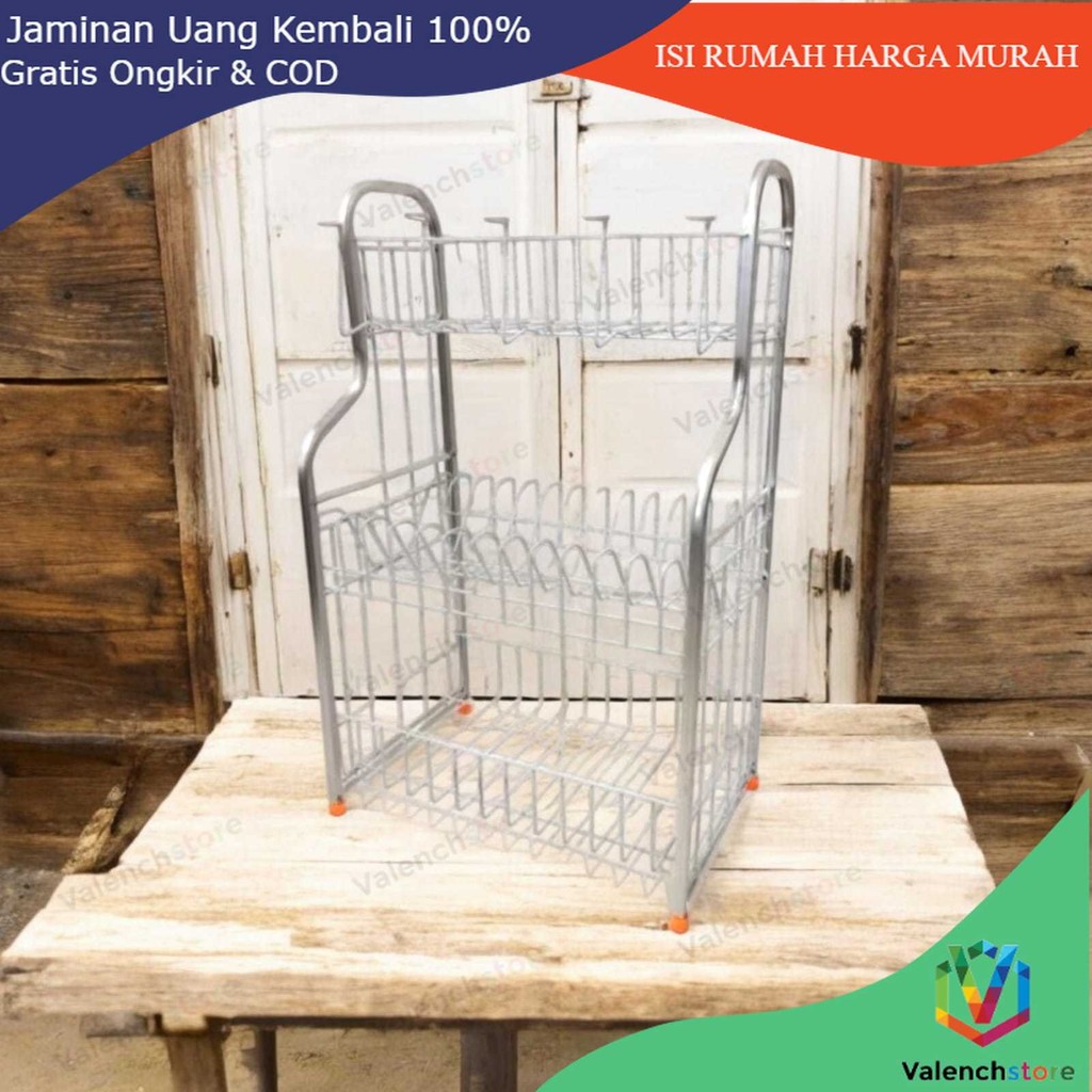 TERMURAH RAK PIRING 3 SUSUN DENGAN GELAS RPL 03 LENGKUNG /RAK DAPUR / RAK GELAS/ RAK PIRING ALUMUNIUM 3 SUSUN / RAK PIRI