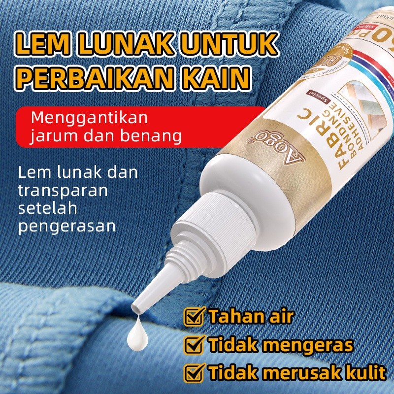 Aogo Lem Khusus Kain/Perbaikan Cepat Tanpa Jahit/Bening, Fleksibel & Kuat