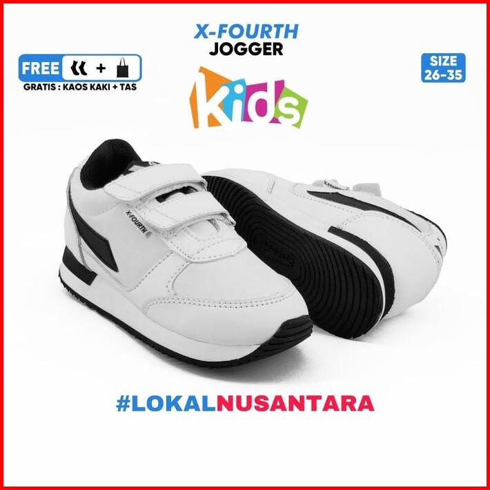 Sepatu Lokal Nusantara X-fourth Jogger Kids Putih Hitam