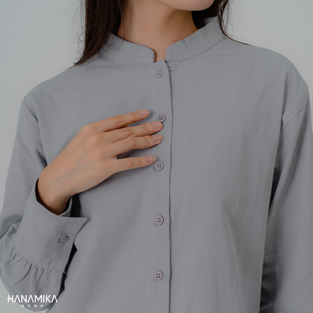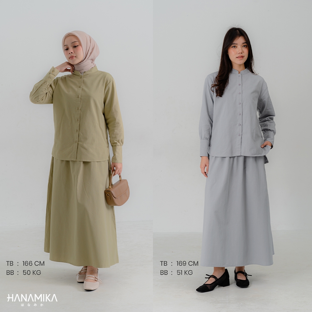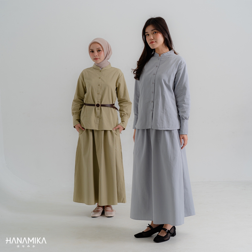 Hanamika Haruka One Set Kemeja Oversize Lengan Panjang Rok Maxi Karet Pinggang Wanita