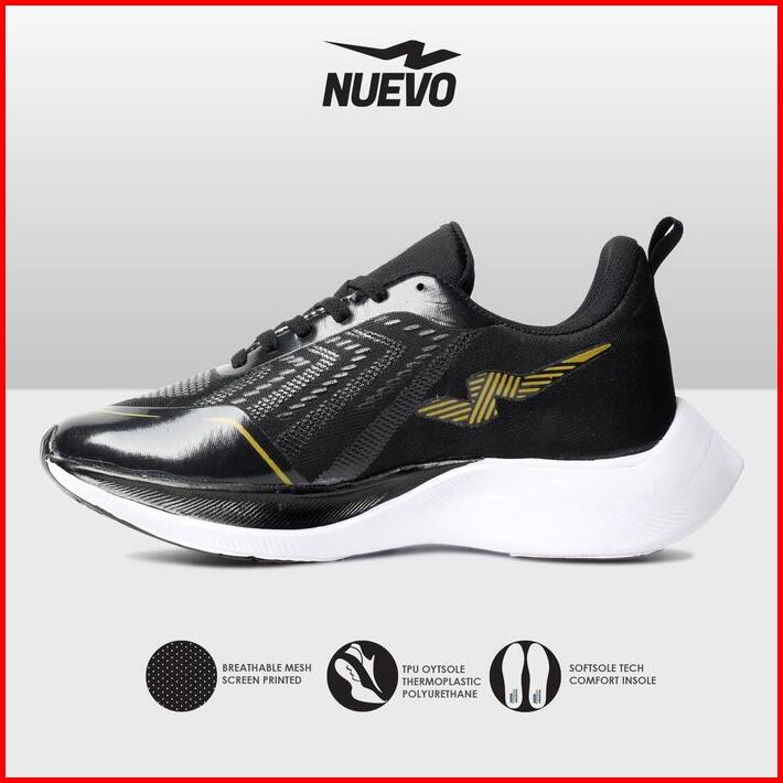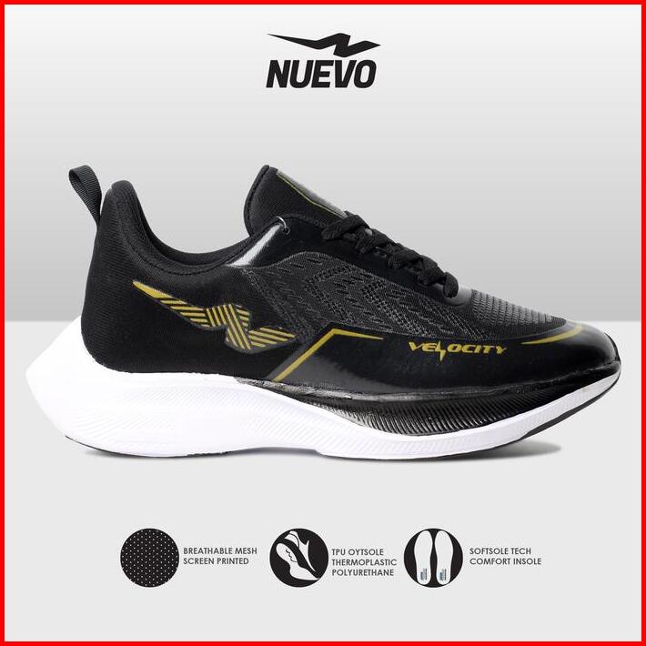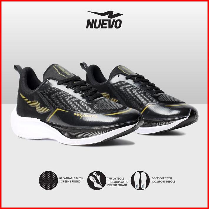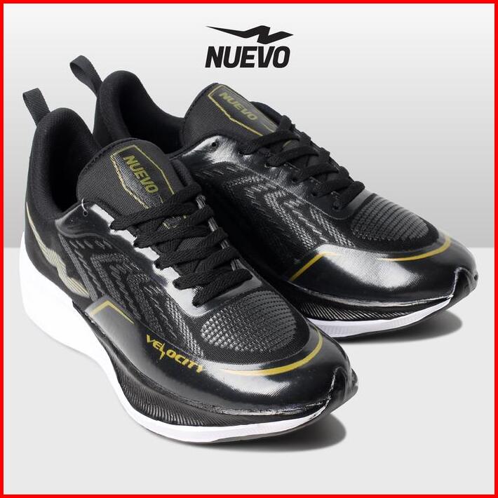 Sepatu Lari Pria Nuevo Velocity Hitam Olahraga Running Lari Santai