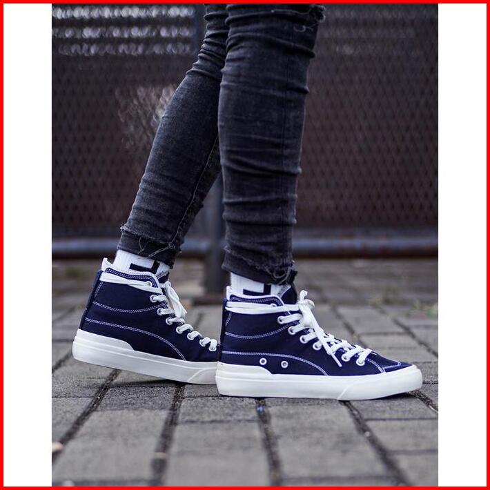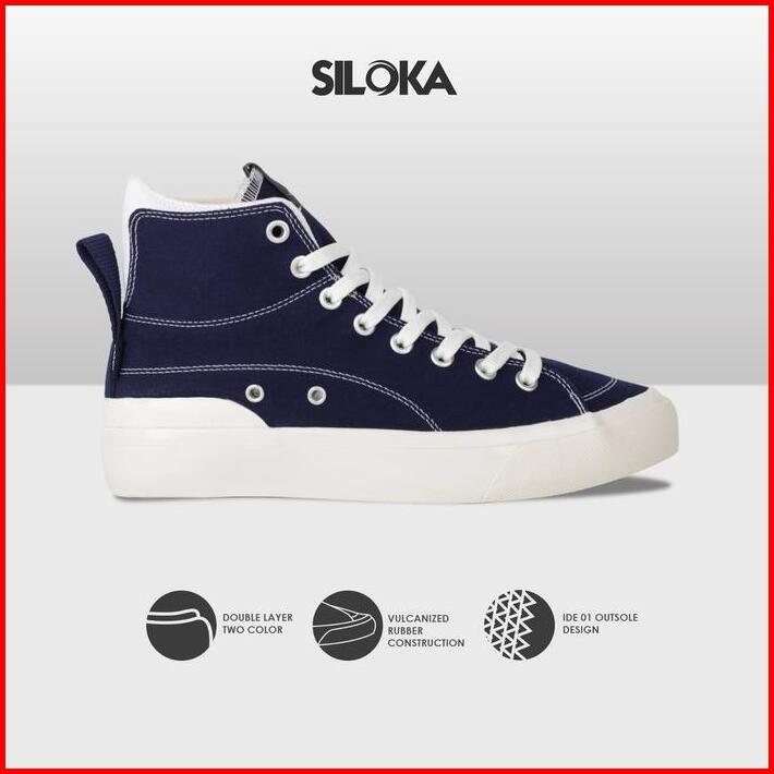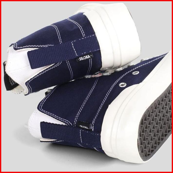 Sepatu Sneakers Pria Siloka Shadow High Navy White Canvas Casual Shoes Black