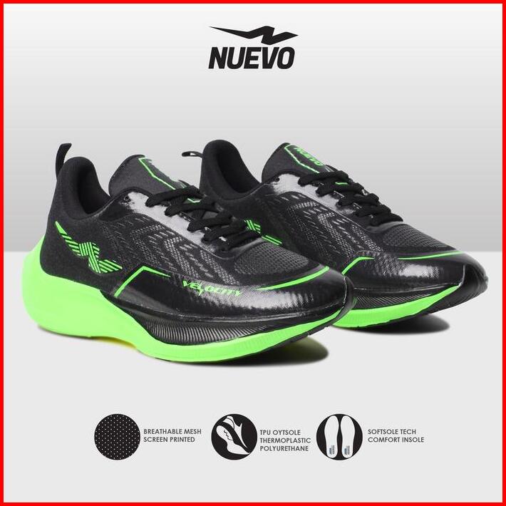 Sepatu Running Pria Original Nuevo Velocity Hitam Hijau Sneakers Lari