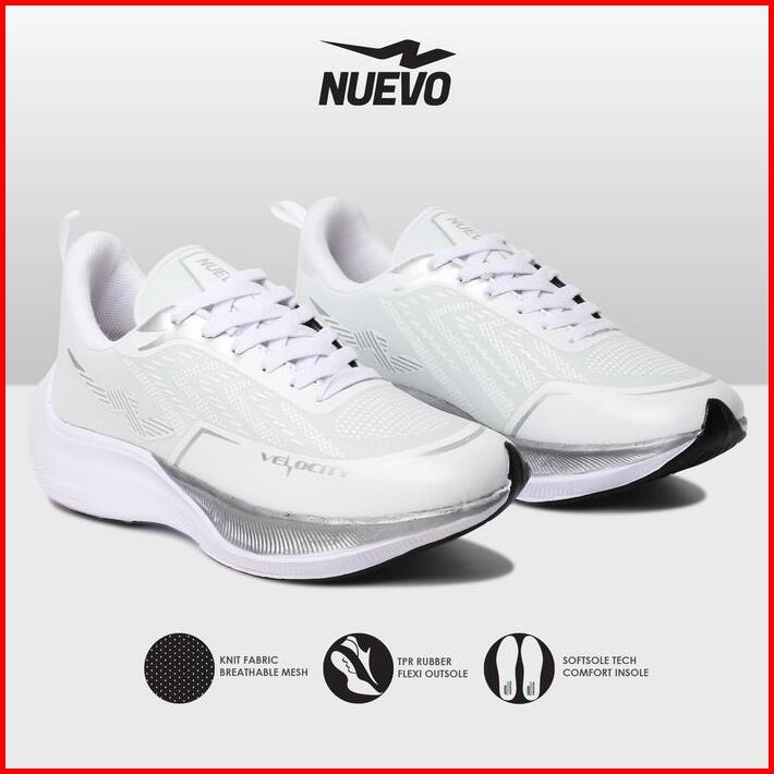 Nuevo Velocity White Silver Sepatu Sneakers Pria Sepatu Running