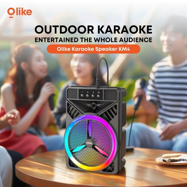 OLIKE KM4 Speaker Karaoke Bluetooth Portable Wireless Micrphone Set RGB LED Speaker Mini Full Bass speaker bluetooth po