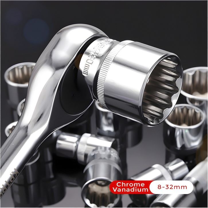 1/2 Socket Wrech Mata Sok 1/2 Inch 8-32mm Mata Kunci Socket Bahan Chrome Vanadium - 6553