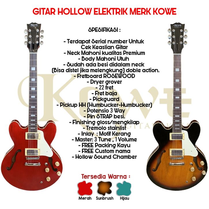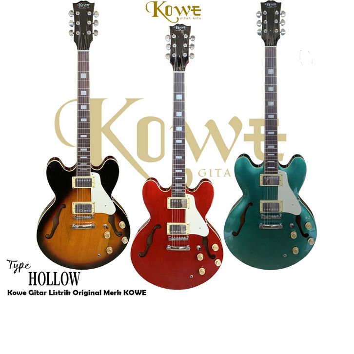 Gitar elektrik Hollow Vintage Merk Kowe Original FREE Custom Nama