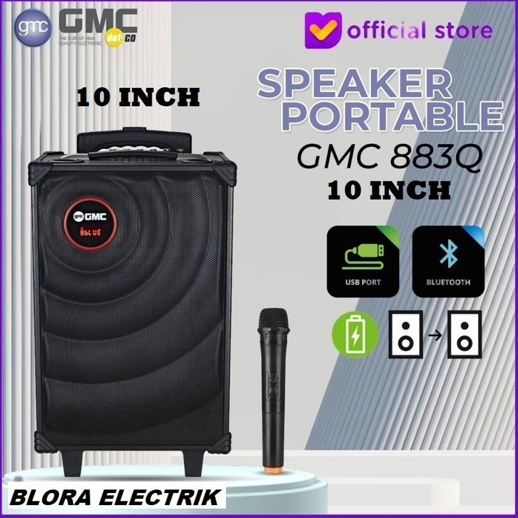 Speaker Portable /Meting Bluetooth GMC 883N Ukuran 15 Inch + Mic Wireless 1pcs