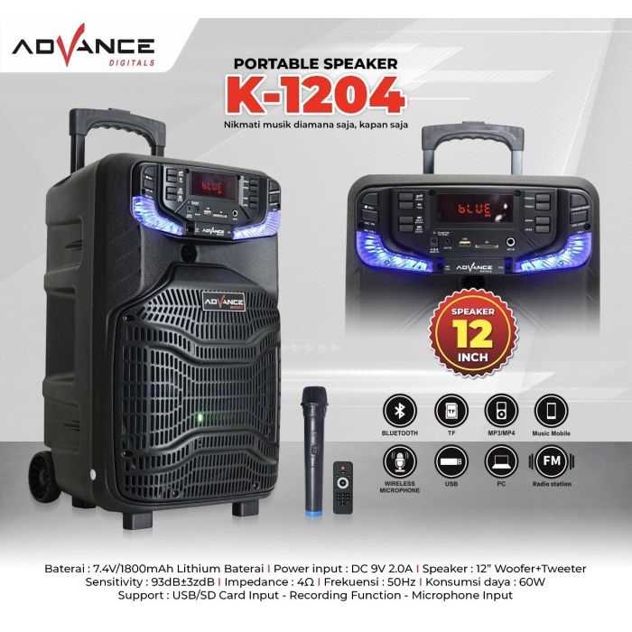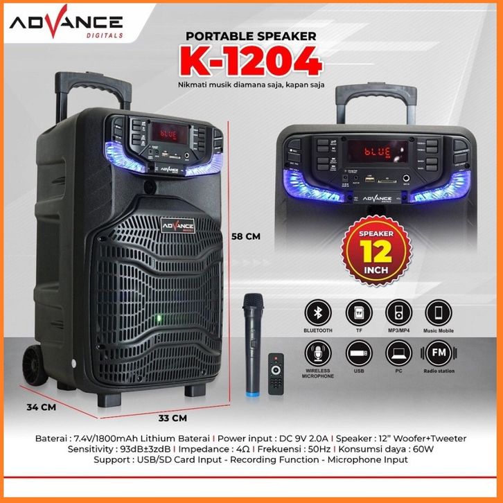 Advance K1204 NEW Speaker Meeting Bluetooth 12 Inch Free 1 mic wireles