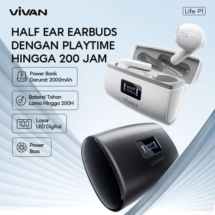 tws bluetooth VIVAN Life P1 Headset Bluetooth 2in1 TWS & Powerbank 2000mAh Power Bass ENC BT 5.4 LED Display Garansi Re