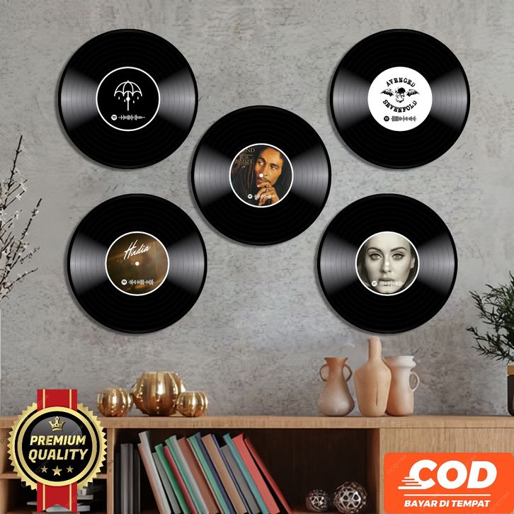 Promo POKA07_Hiasan dinding Vinyl Pian Hitam Album Band Lagu Favorit Bisa Discan Spotify New