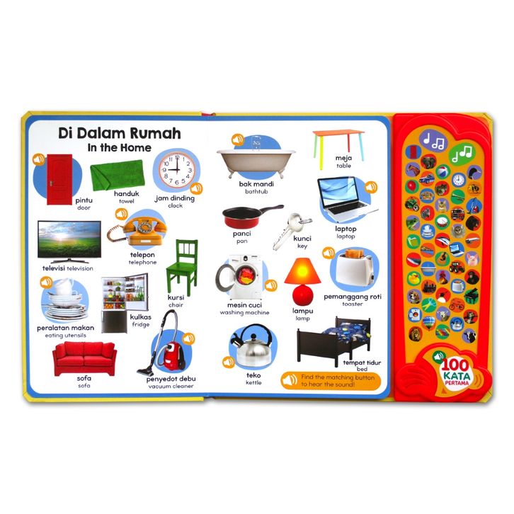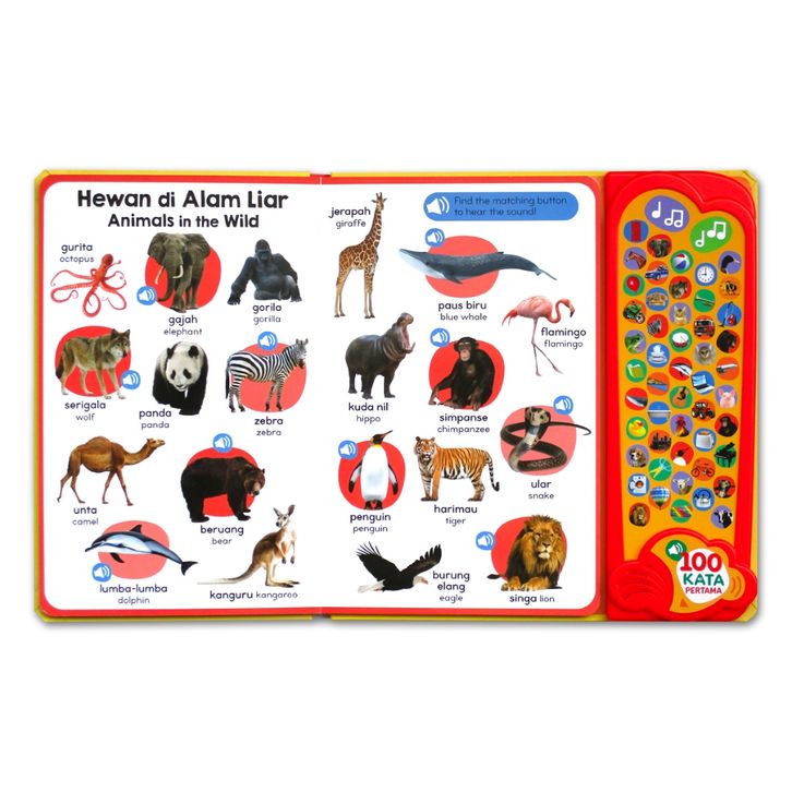 Promo 100 Kata Pertama Sound Book dengan 50 tombol suara seru (Bilingual - Bahasa Indonesia &