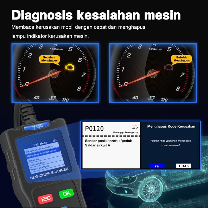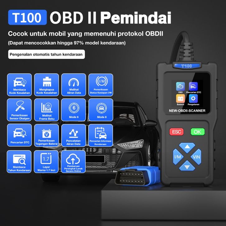 Promo OBD2 Scanner Alat Diagnostik Mesin Trouble e Reader T100 OBD 2 Mobil Scanner Universal Mesin