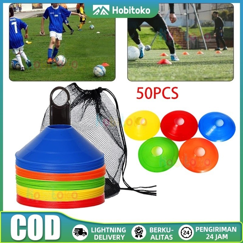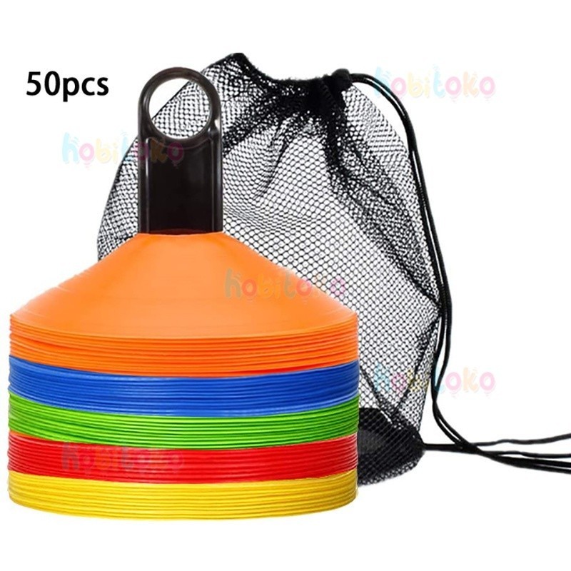 Pelat Kerucut 50 Buah Mangkuk Latihan Sepak Bola Penanda Kecepatan Penanda Mangkuk Kun Latihan/Penanda Peralatan Olahrag