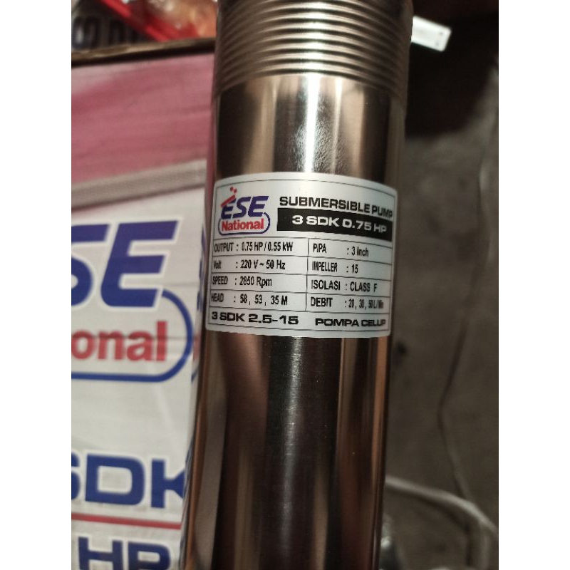 Pompa Satelit Ese National 3"SDK 0,25Hp dan 0,33Hp dan 0,5Hp dan 0,75Hp dan 1Hp+Kabel Submersible Pump Pompa sibel 3 Inc