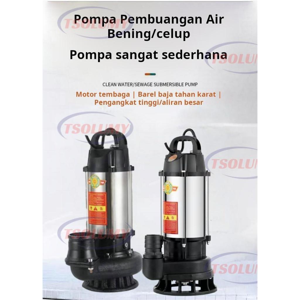 Tsolumy Pompa Celup Air Kotor 750w Dorong Maks 12M Sewage Pump 2inch Mesin Pompa Air Pompa Air Keruh