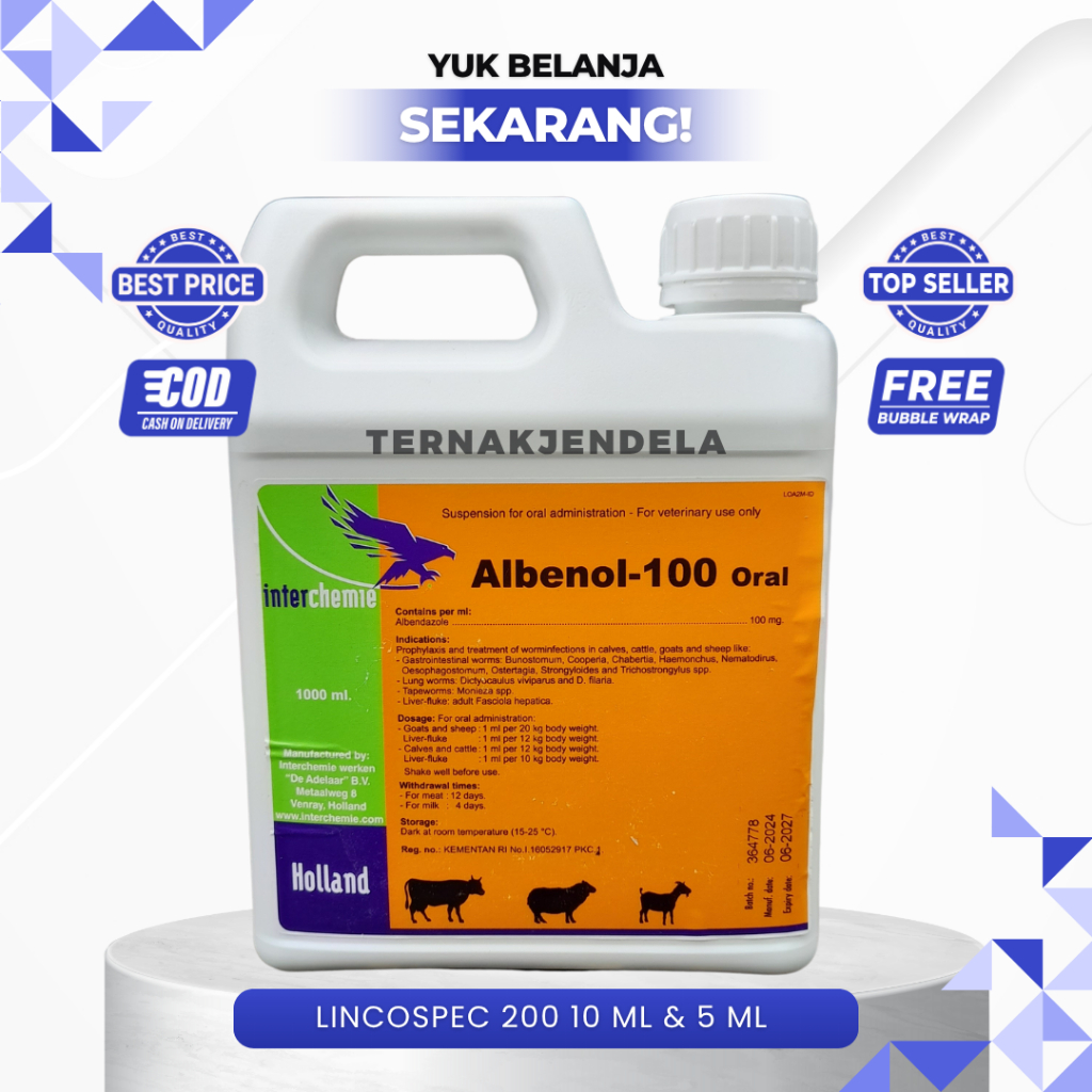 Albenol-100 Oral 1L - Obat Cacing Oral Untuk Ternak Sapi, Kerbau, Kambing, Domba