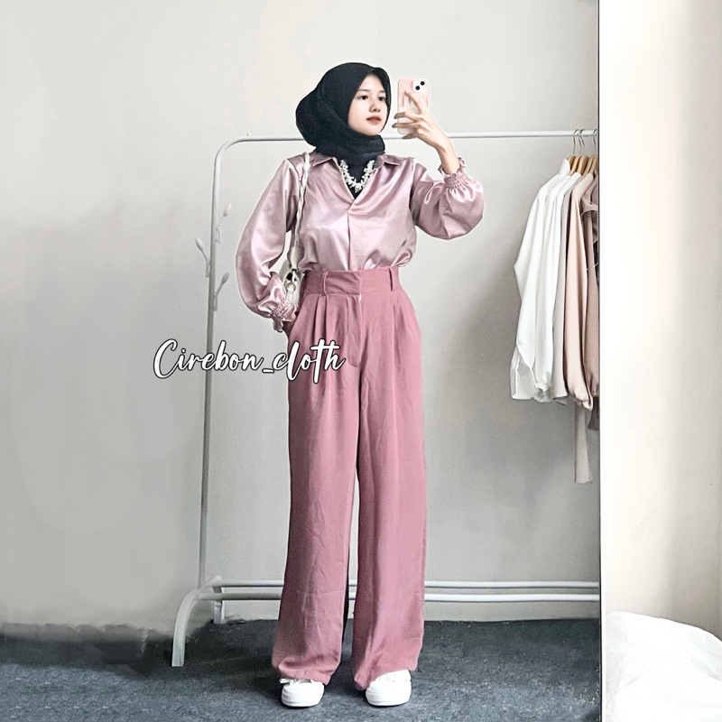 2 One Set Satin Wanita One Set Blouse dan Celana Wanita One Set Kerja Wanita One Set Casual