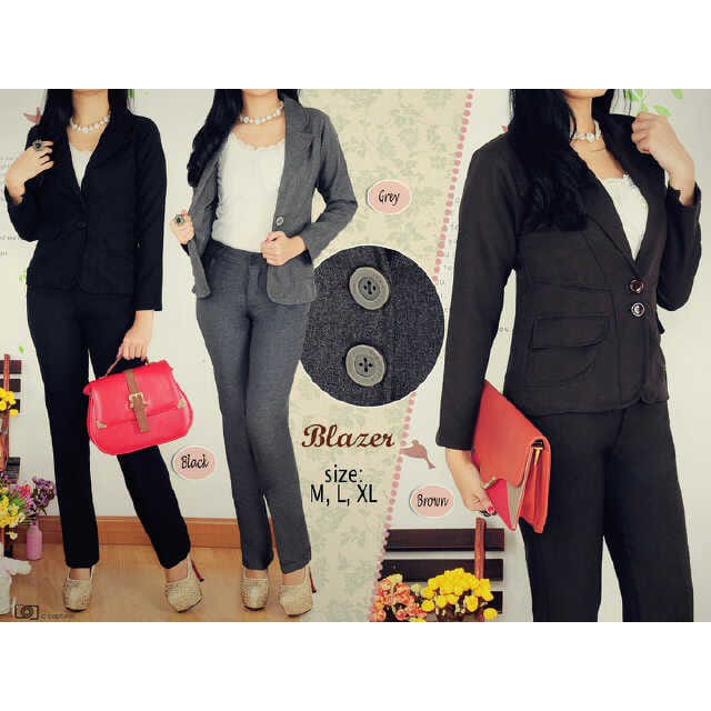 Setelan Pakaian Kerja Wanita Formal Jas Blazer Dan Celana Panjang