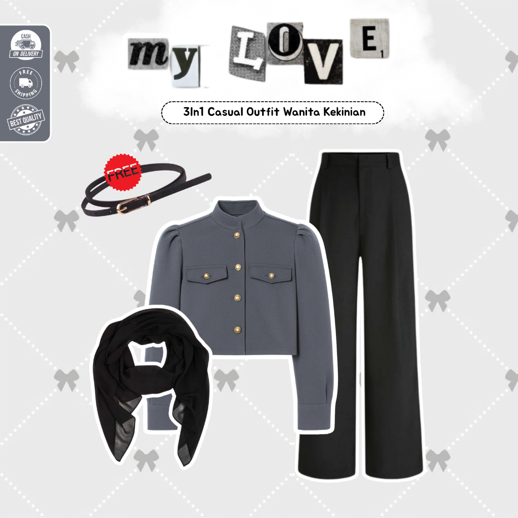 Setelan Blazer Wanita KekinianCelana Jennie Knit HitamHijab Bella Square Hitam One Set Wanita Kekinian Ootd Korean IL43