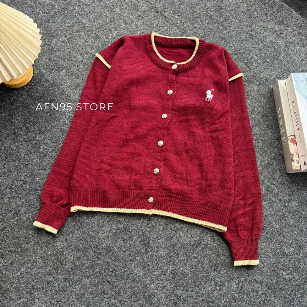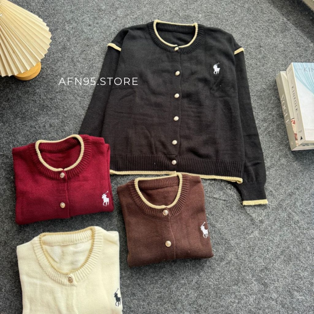 Cardigan Rajut Wanita List Polo Bordir Horse Bahan Premium