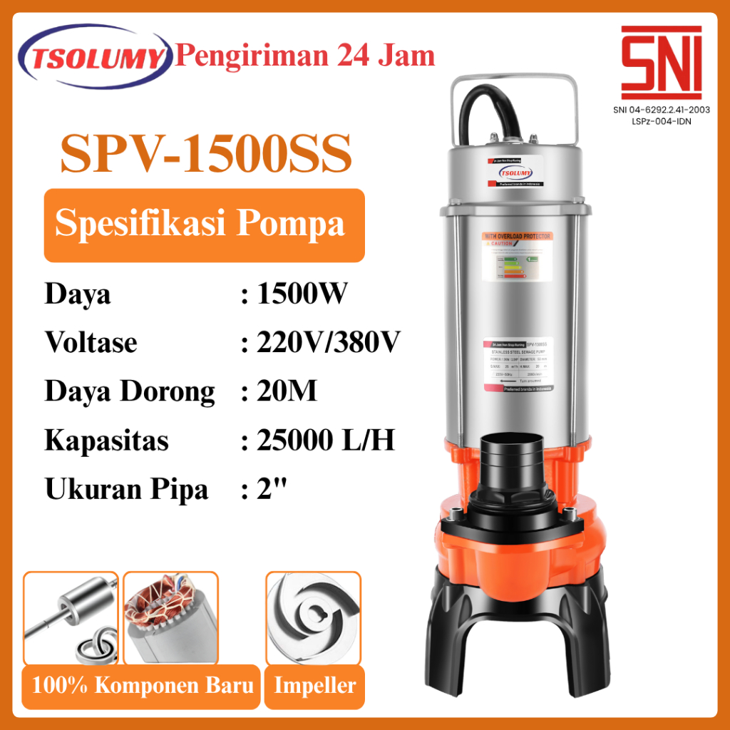 Tsolumy Pompa Celup Air Kotor SPV-1500SS Sewage Pump2" Pompa Lumpur Kolam Ikan / Pompa Limbah