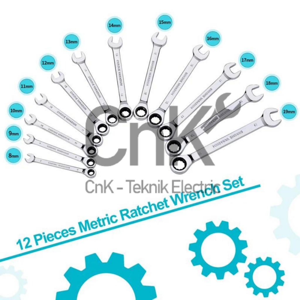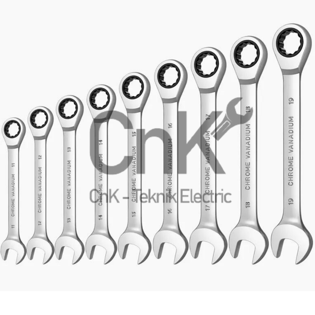 KUNCI RING PAS RATCHET 2IN1 BOLAK BALIK PANJANG 8 - 19 MM