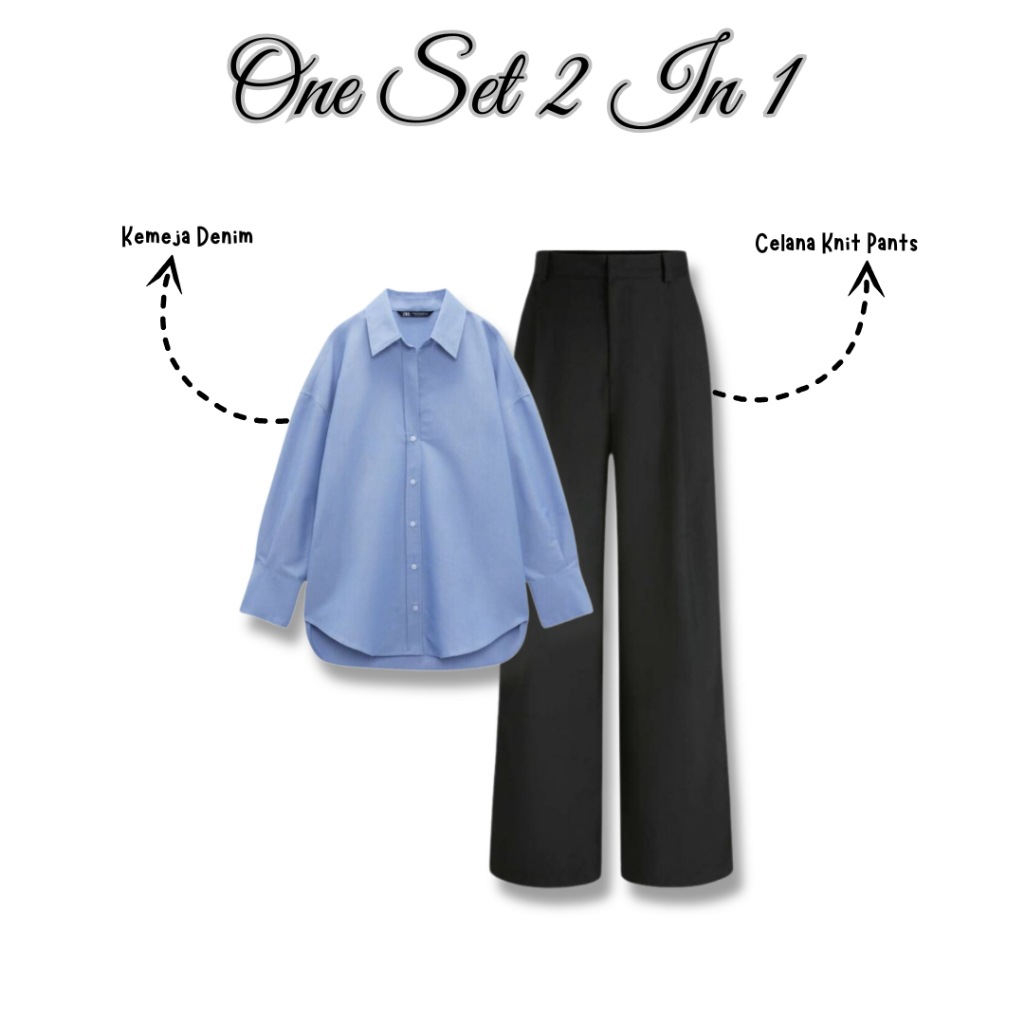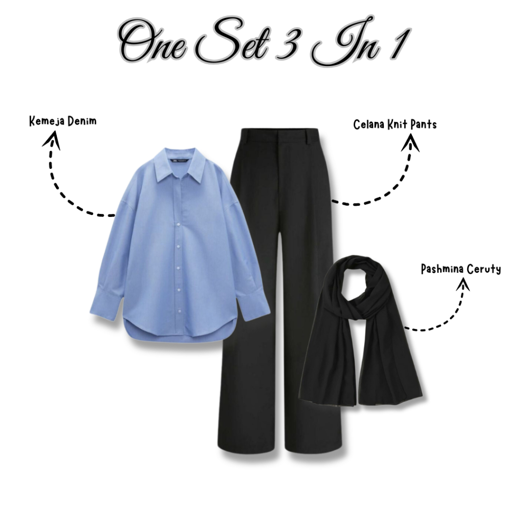Soniasa One Set 3 In 1 fit Kemeja DenimCelana Knit PantsPashinaSetelan OOTD Harian VM063