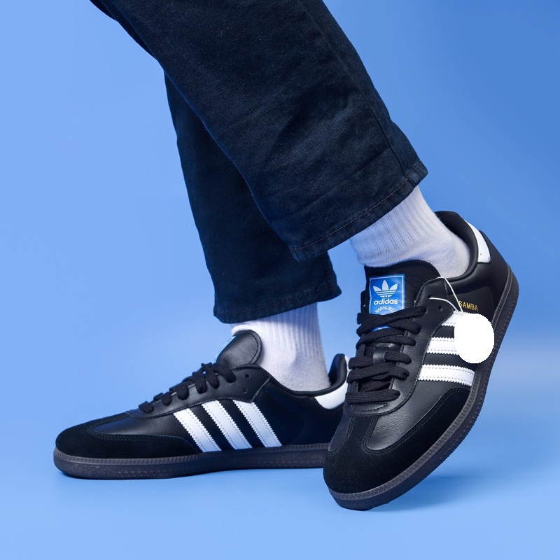 [Mall]Sepatu Adidas Samba Classic OG Full Black Gum White Stripes Sneakers Pria Wanita Original BNIB - Original NB
