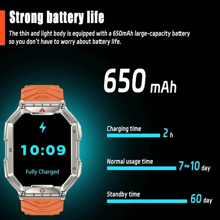 Zero KR82 Smartwatch 2.1"Amoled Full Screen Al Voice Control Compass Altitude Pressure Flashlight Bluetooth Call Remote