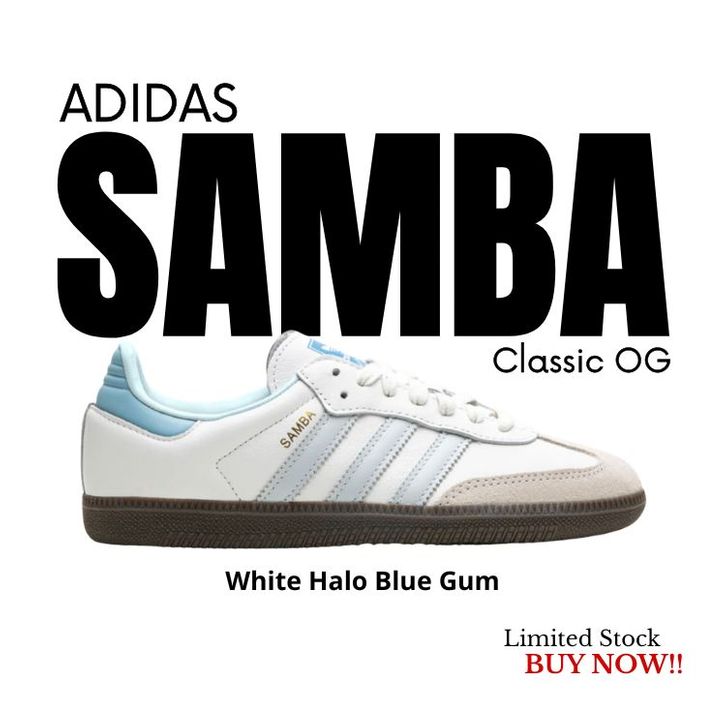 [Mall]Sepatu Adidas Samba OG Classic Core White Blue Gum White Halo Blu Sneakers Pria Wanita Original BNIB - Original NB