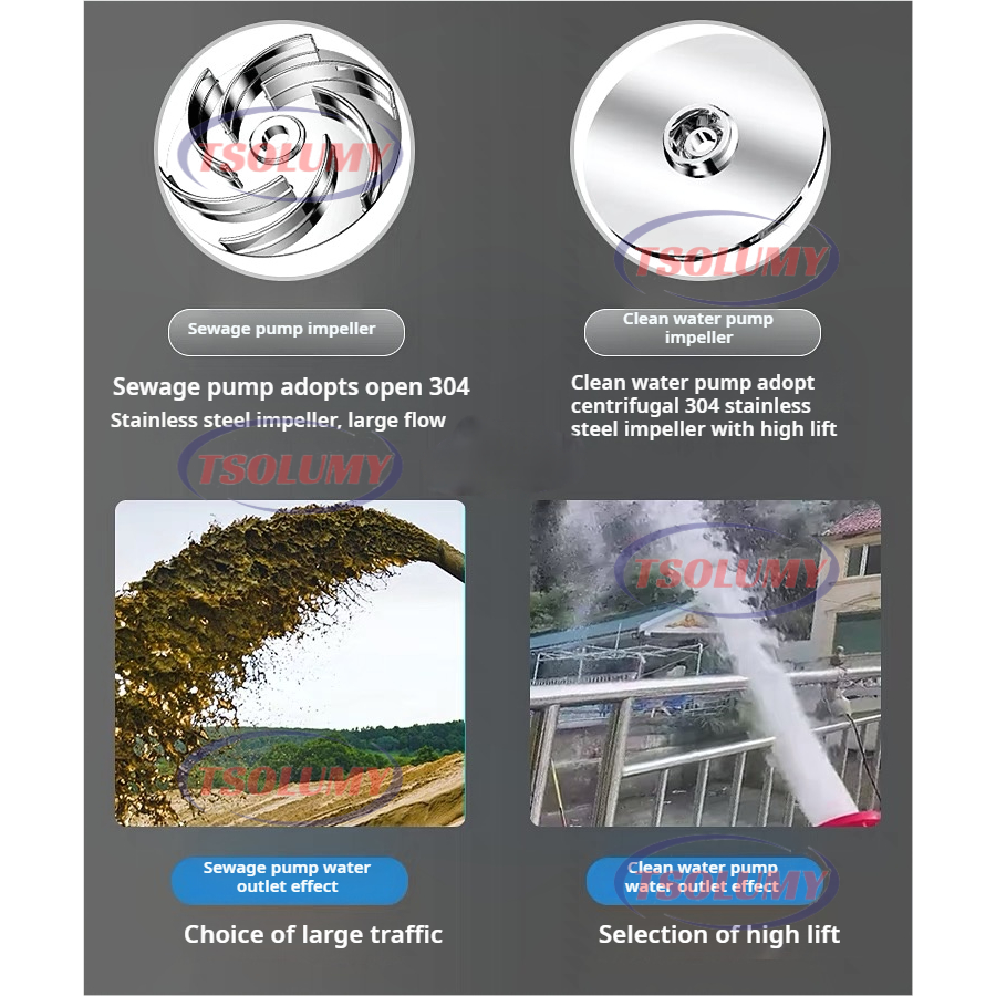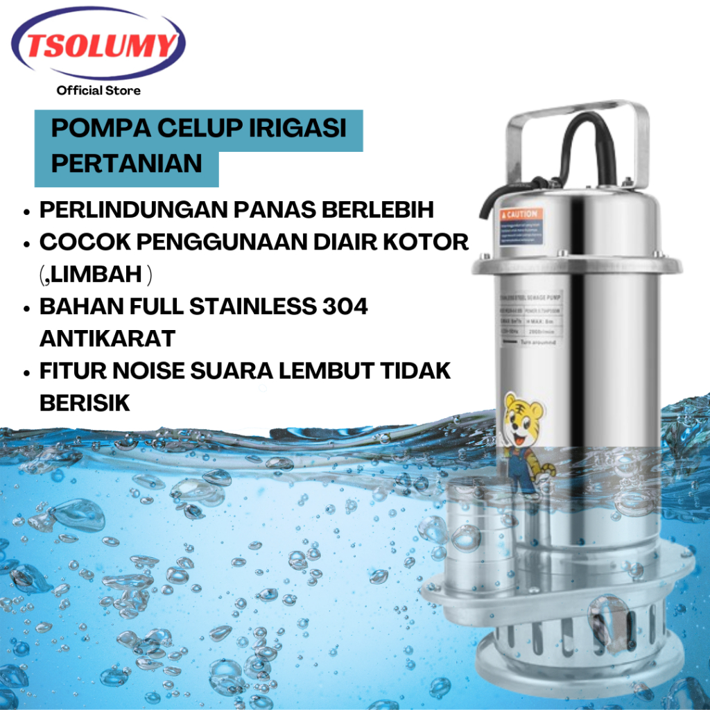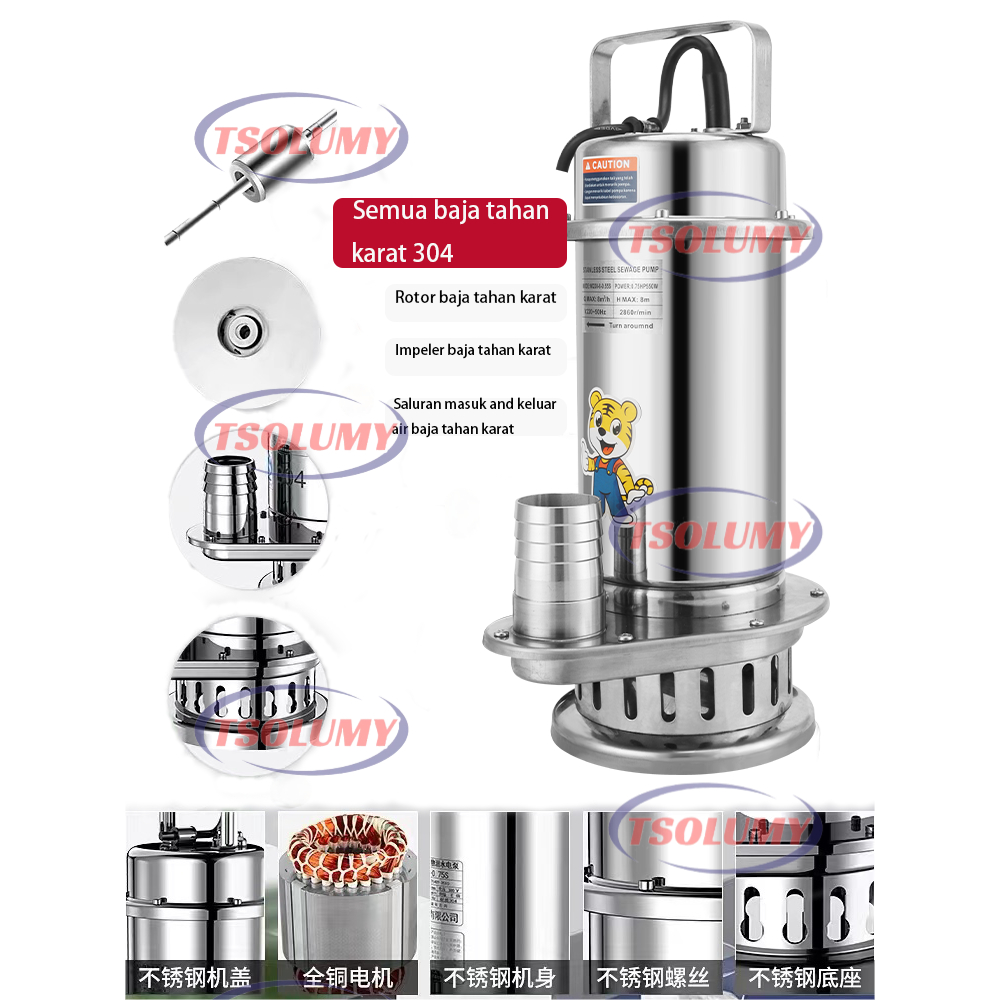 Tsolumy Pompa Celup Air Kotor SPV-750SSS Stainless Submersible 2Inch Pompa Air Laut / Pompa Tambak
