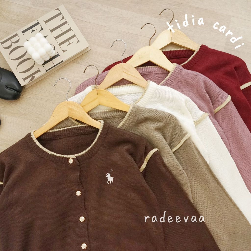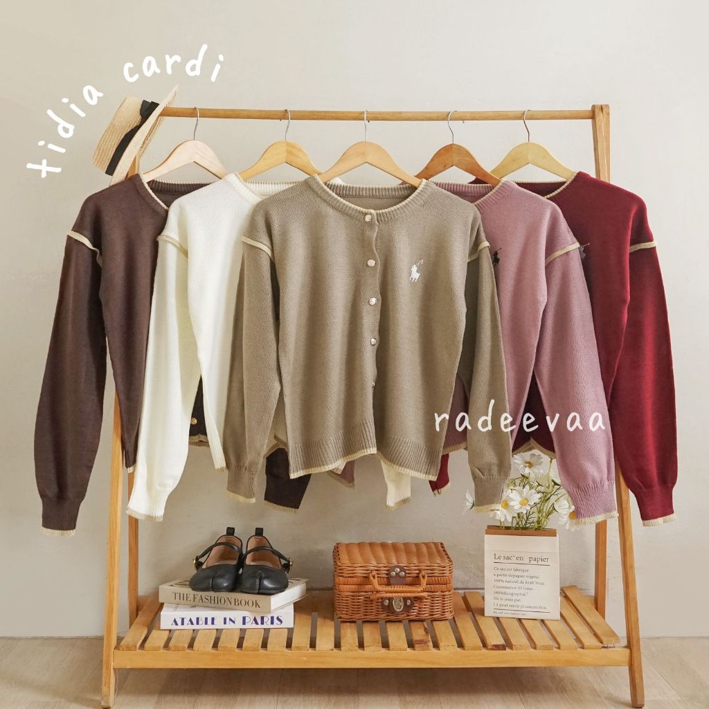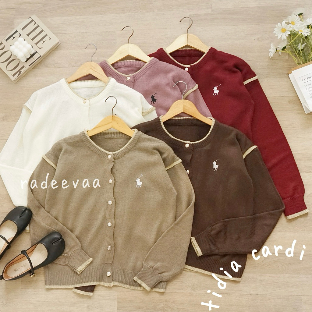TIDIA CARDI Knit Cardigan Rajut Polo Horse List Wanita Simple Korean Style
