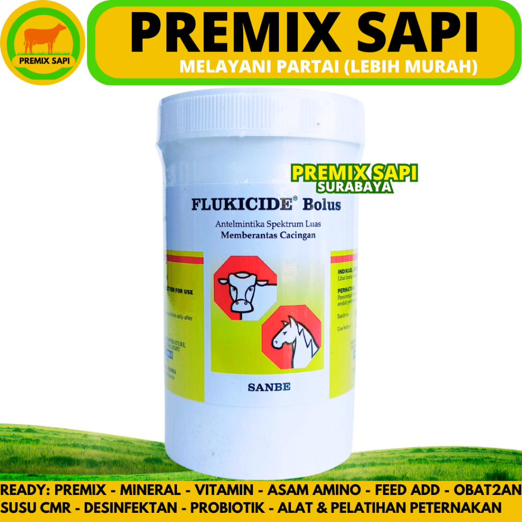 FLUKICIDE 12 BOLUS (1 POT) SANBE - Obat Cacing Sapi Kuda Babi Ampuh Spektrum Luas Flukisid Flukicid