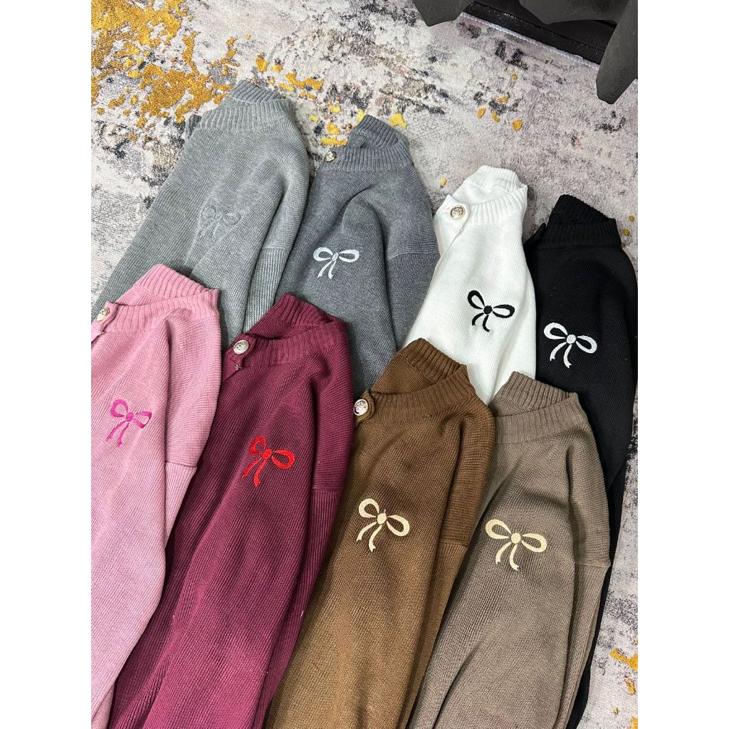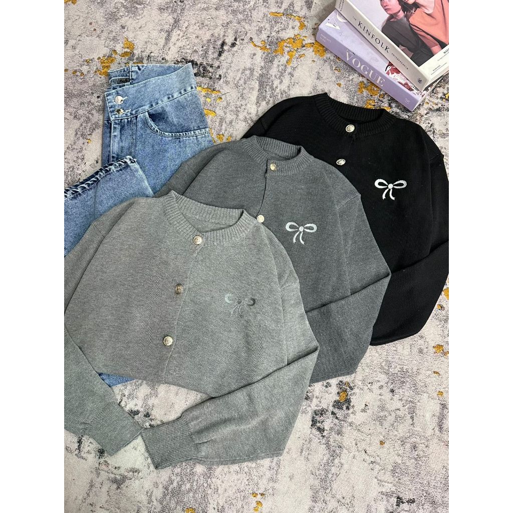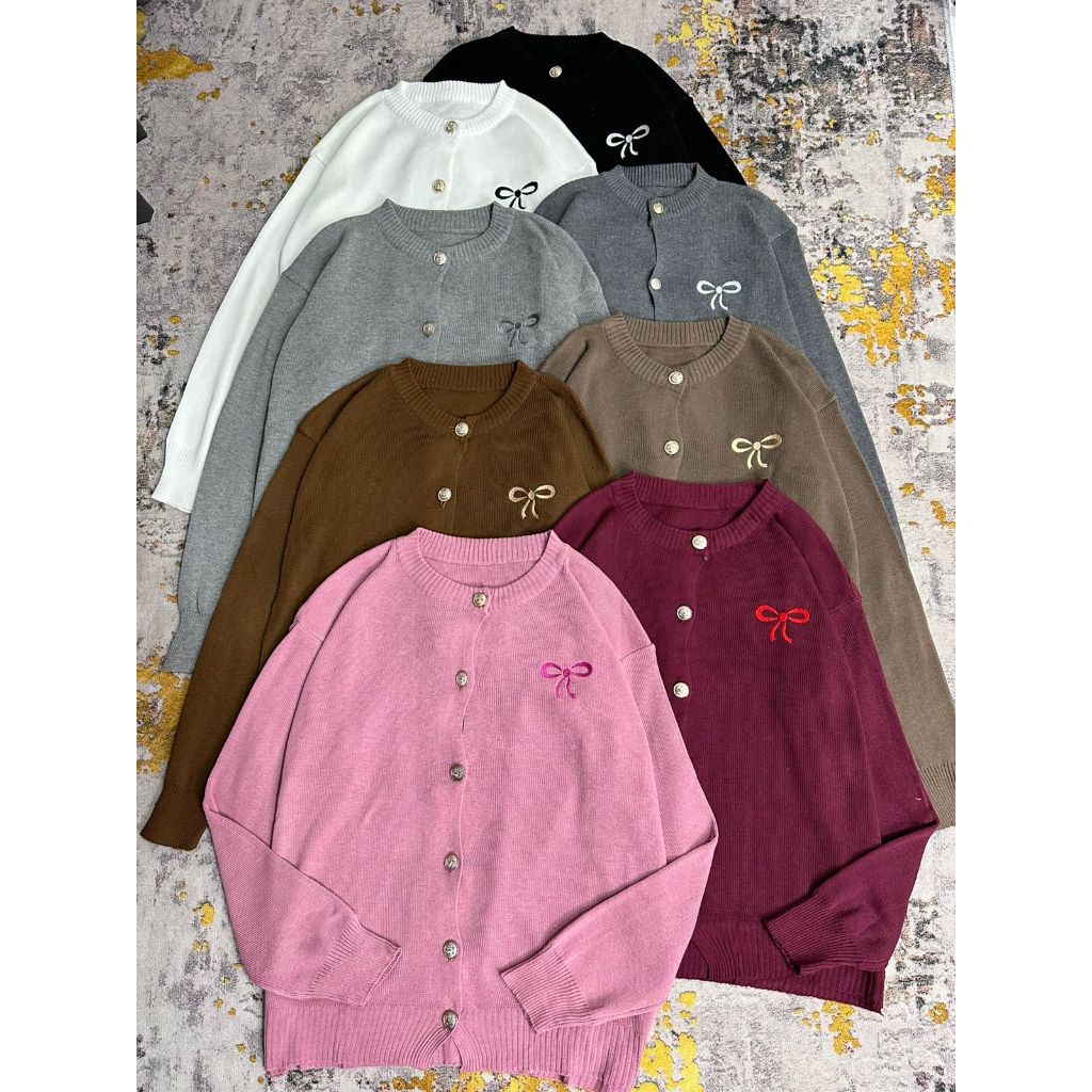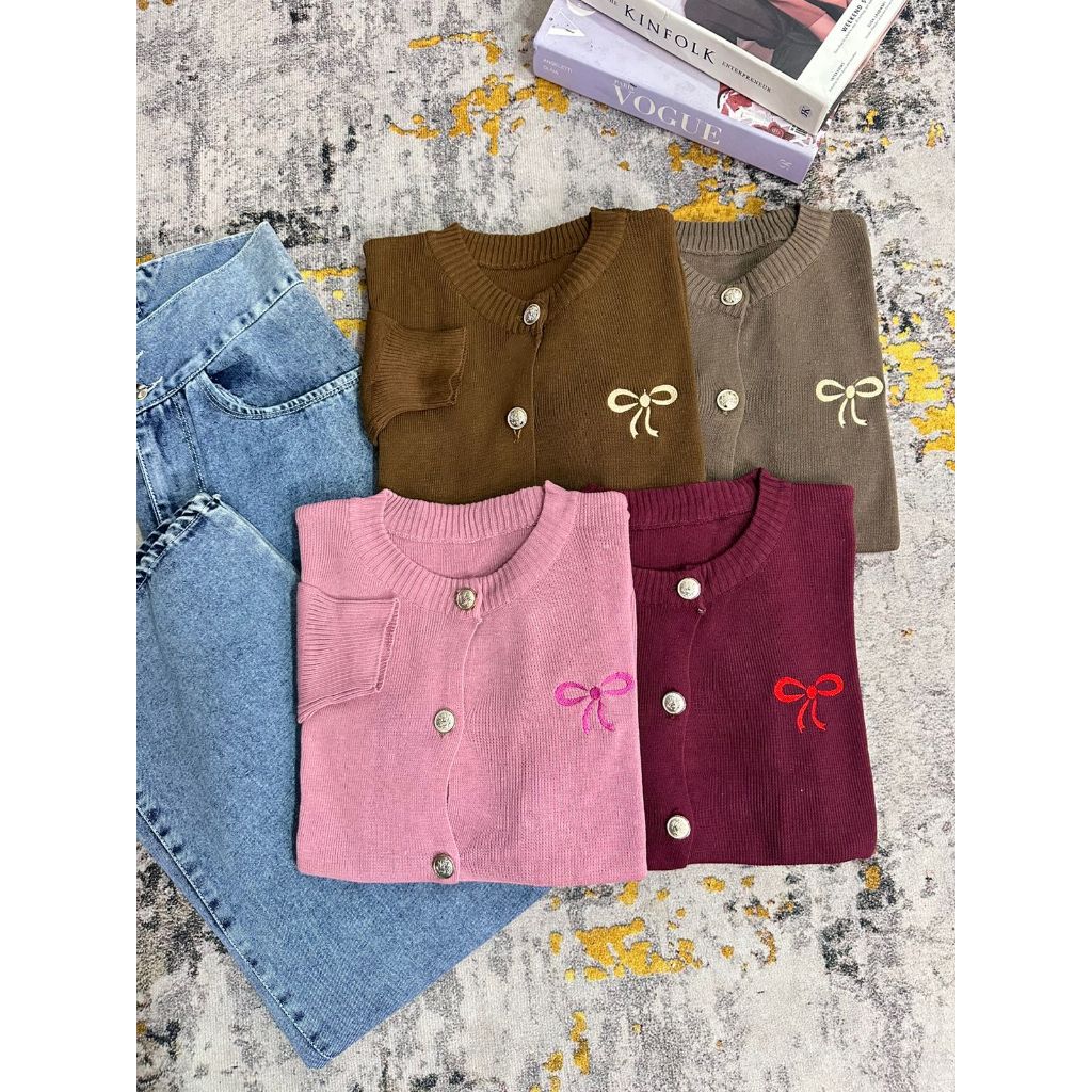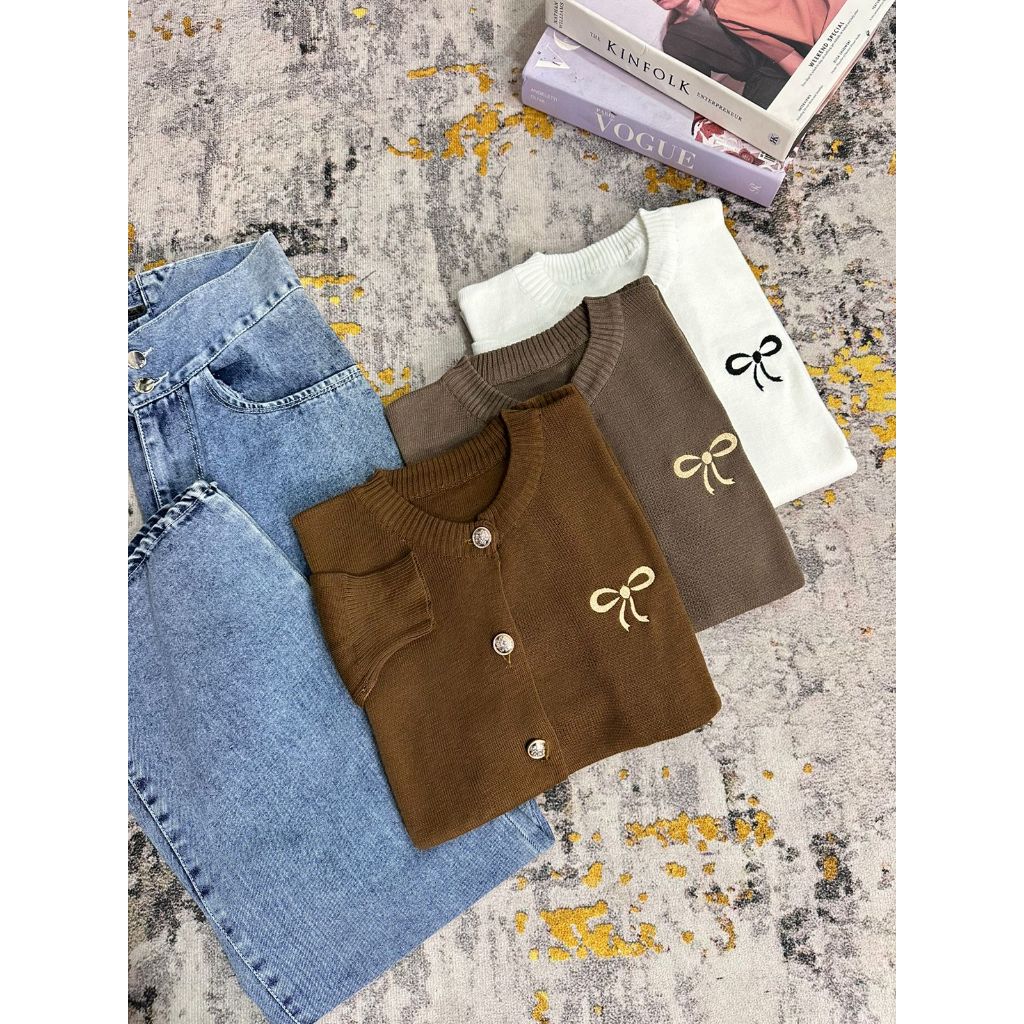Dailyofprincess Clara Cardigan Rajut Wanita Bordir Pita Kancing Depan