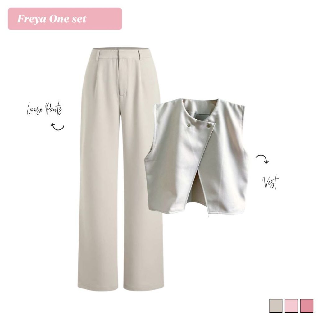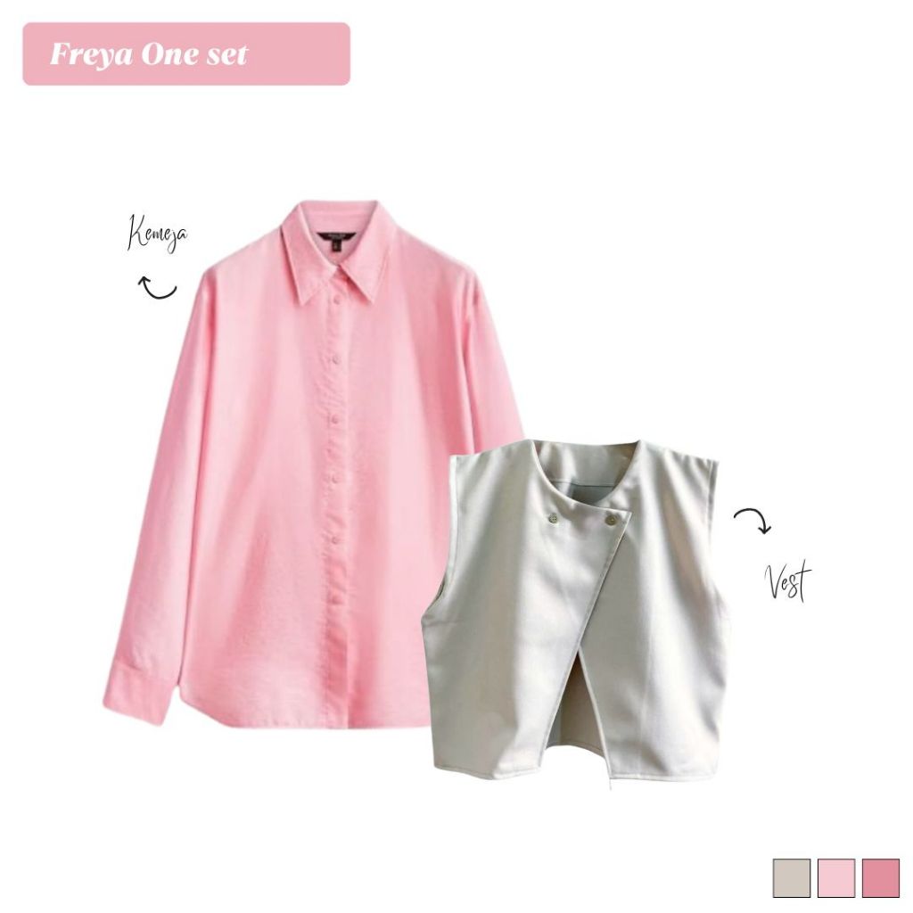 Freya One Set Wanita Hijab Kemeja Vest Loose Pants Bella Square Casual Ootd fit Kantor Hang