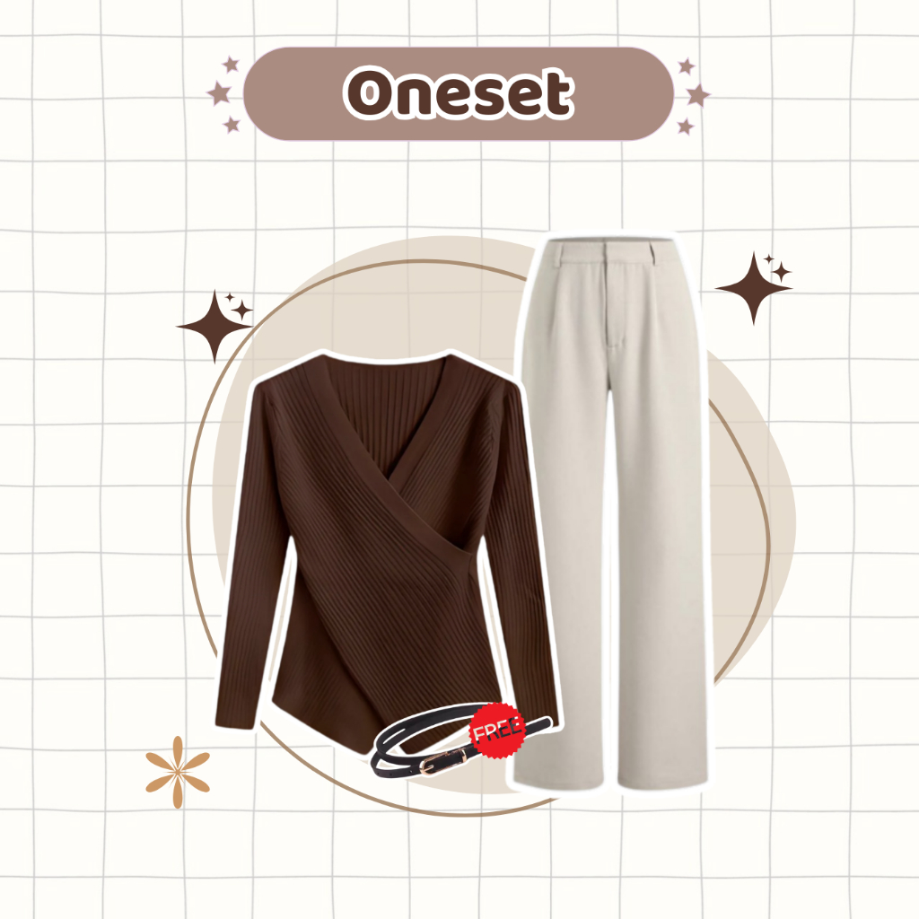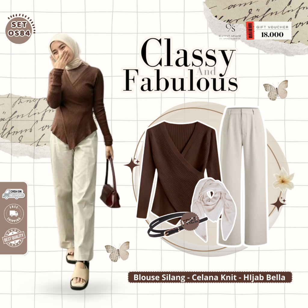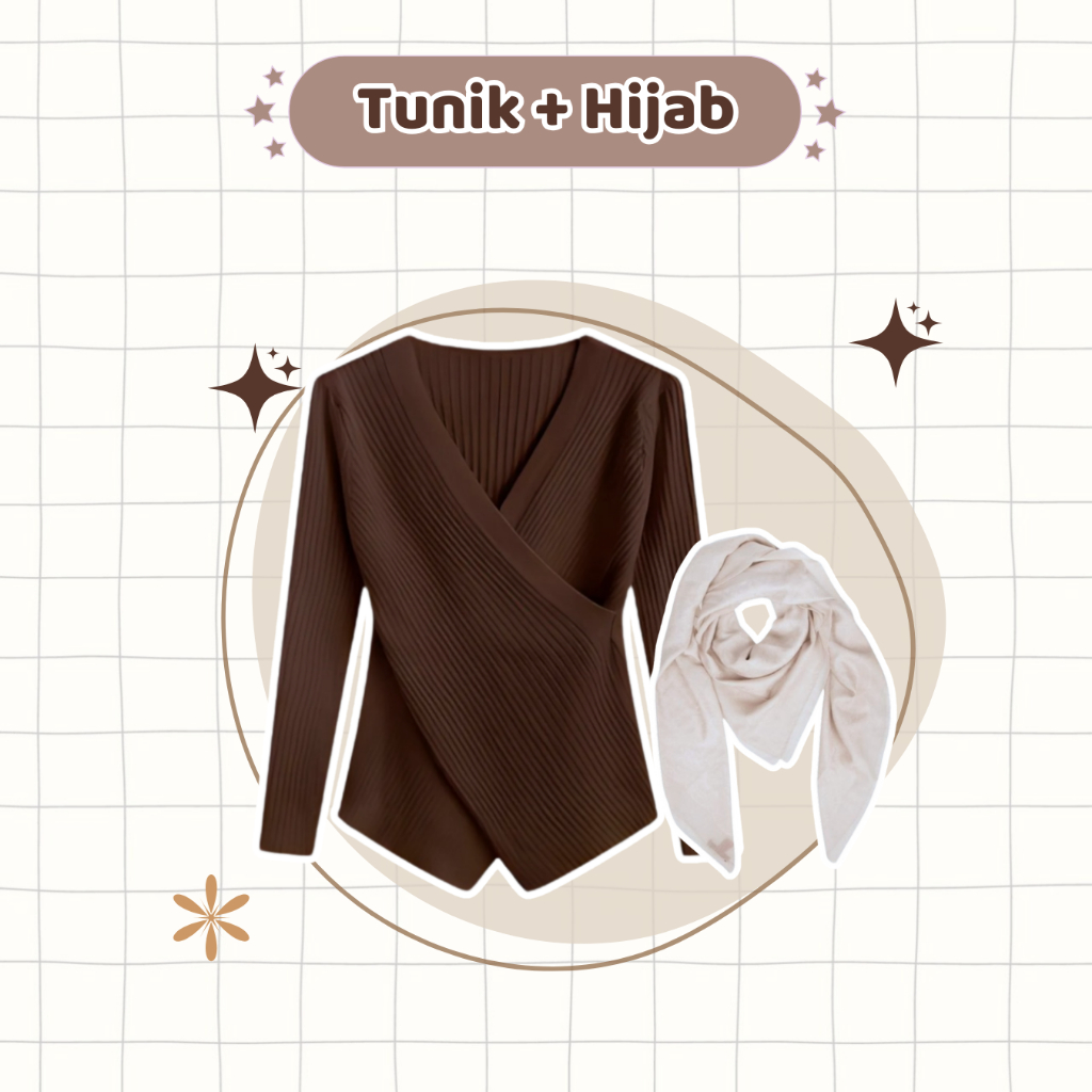 Hijab Style fit Korea Celana IvoryJiso Blouse ChocoBella Square One Set Wanita Hijab-OS84