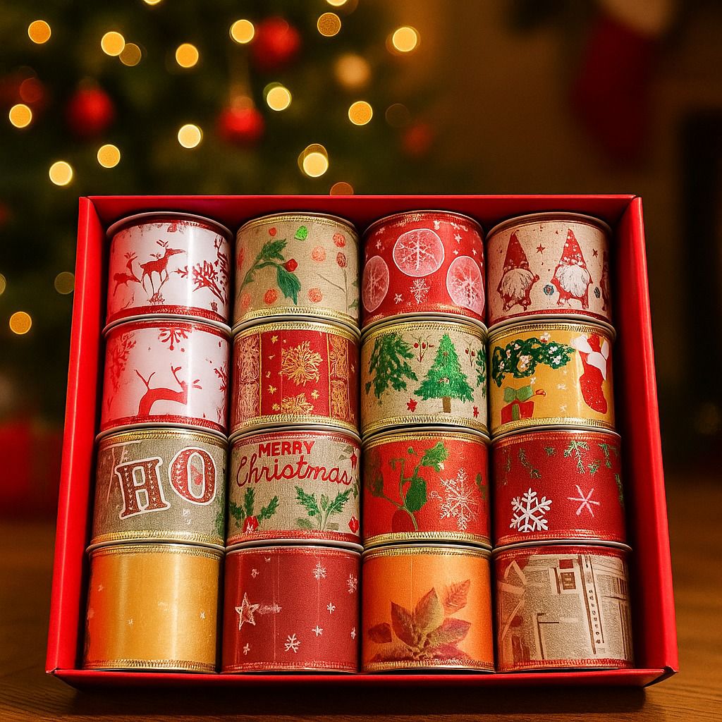 Pita Roll & Ribbon Aksesoris Hiasan Pohon Natal / Pita Glitter Natal Pinggir Kawat Pita Parcel Pita Christmas