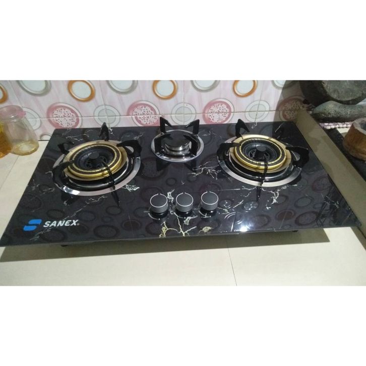 SANEX Kompor Gas Tanam 3 Tungku 2in1 Motif Premium Elegan Api Tornado Hitam & Putih SN-KT301