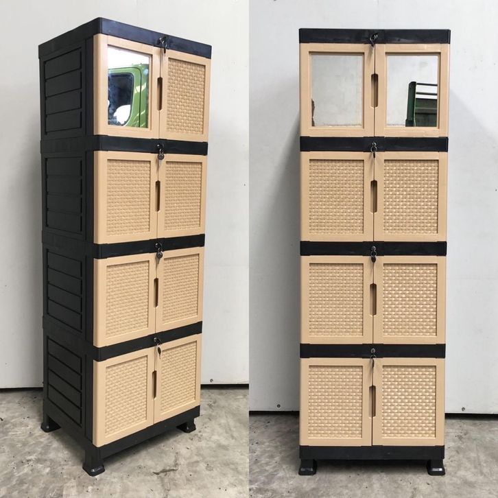 Lemari plastik 4 susun jumbo Lemari PLastik Susun 4 dan susun 3 MIni KUNCI Plus Kaca ROTAN