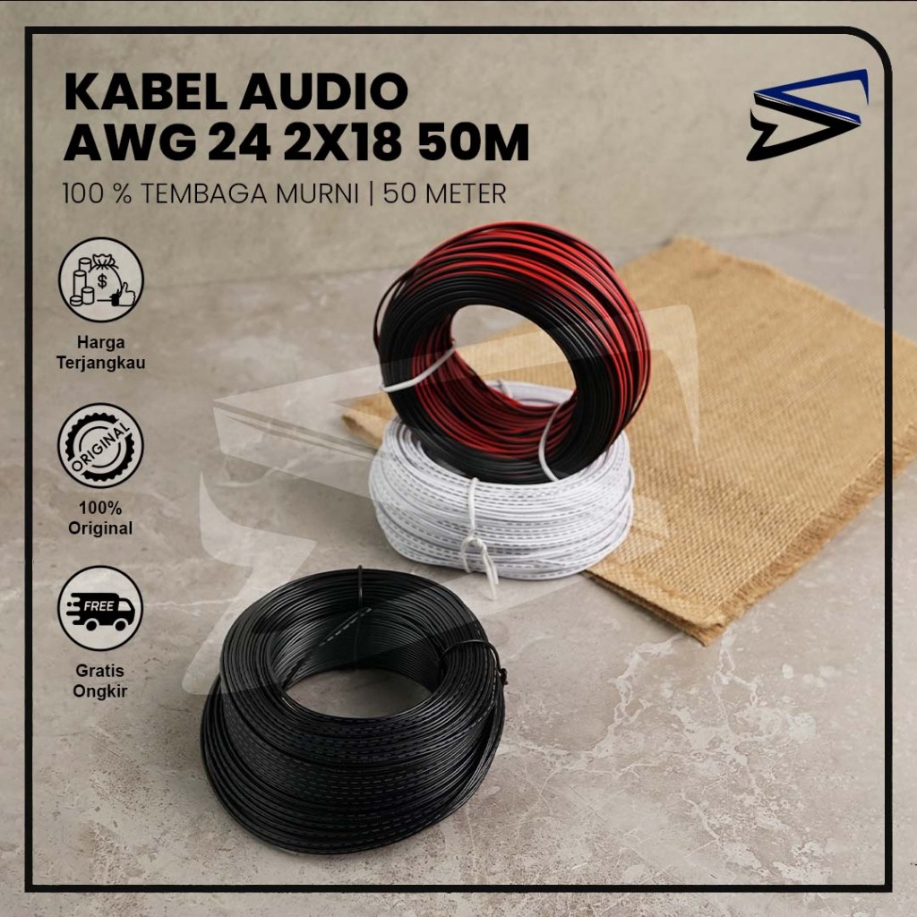 [Star] Kabel 24 Awg 50 Meter 2X18 Serabut Tembaga Otomotif Mobil Motor Audio / Speaker / Lampu Led